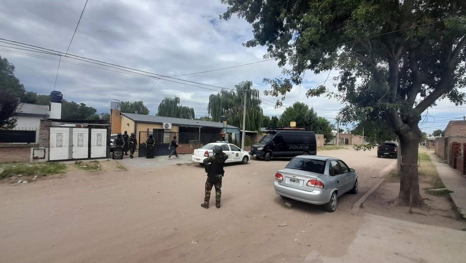 Con intervención de la Fiscalía de Delitos contra la Propiedad, se realizaron tres allanamientos en domicilios vinculados a uno de los sospechosos, quien cuenta con antecedentes penales. Los operativos se llevaron a cabo en una vivienda de la calle Payné, en el barrio Obreros de la Construcción; en un domicilio de la calle Catriló al 2.200; y en otro ubicado en Hucal al 1.200, con participación de distintas dependencias policiales y grupos especiales.