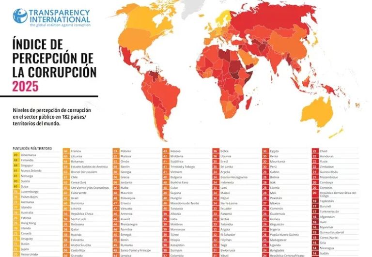 La Argentina registró un aumento de los casos de corrupción a lo largo de 2025, según lo indica mundial de transparencia elaborado por la organización no gubermental Transparency International, que muestra al país en el puesto 104, cuando en 2024 estaba en el puesto 99.
